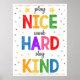 JOGAR BONITO, DURO DE TRABALHO, POSTER STAY KIND Um poster excelente para ficar em uma sala de aula de todas as idades (especialmente as escolas elementares) para lembrar as crianças de suas expectativas e regras de sala de aula! Possui um design com cores divertidas, brilhantes e alegres.