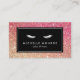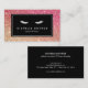 Uma imagem reluzente vermelha/bronze preenche o fundo dessa cartão de visita de beleza temática. Um par de pestanas brancas é a marca perfeita para extensões de pestanas, maquiadores, empresas cosméticas, bares de lash e muito mais. © 1201AM CREATIVE