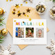 "Fa la la la la" em caracteres pastel coloridos e bonitos, apresenta 3 colagens fotográficas Cartão magnético de Natal.