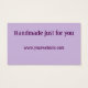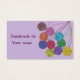 Coloque o seu próprio nome e detalhes neste cartão para dizer Handmade By. A frente é decorada com um desenho de bolas de fio de várias cores. O plano de fundo é lilás pálido e o texto em uma cor violeta mais profunda. É ideal para qualquer pessoa que ame ou trabalhe com crochê, artesanatos de fios, artesanato ou crio e entregue ou vende o seu trabalho. O cartão de visita pode ser personalizado com seu nome e detalhes comerciais.
