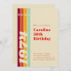Este convite de 50 anos retro apresenta uma tipografia ousada inspirada na década de 1970 e listras vibrantes em laranja, lacre e vermelho sobre um fundo de creme limpo. O design de vintage destaca o nome e os detalhes do evento da honestidade de aniversário em vermelho, combinando encanto nostálgico com elegância moderna — perfeito para celebrar um marco no estilo.