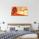 No cenário de um mapa solitário numa encosta, as folhas laranja e amarelas do outono flutuam sobre a brisa.