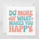 Surpreenda-se com alegria e positividade com este delicioso cartão de saudação "Faça mais do que te faz feliz", acentuado por flores bonitinhas e coloridas. Este trabalho de arte animado e motivacional é um gentil lembrete para abraçar o que nos traz alegria, persegue seus sonhos, e prioriza o autocuidado. Um presente de excelente para a conscientização da saúde mental, entusiastas do crescimento pessoal, ou qualquer pessoa que precise de um pouco de inspiração diária.