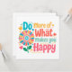 Surpreenda-se com alegria e positividade com este delicioso cartão de saudação "Faça mais do que te faz feliz", acentuado por flores bonitinhas e coloridas. Este trabalho de arte animado e motivacional é um gentil lembrete para abraçar o que nos traz alegria, persegue seus sonhos, e prioriza o autocuidado. Um presente de excelente para a conscientização da saúde mental, entusiastas do crescimento pessoal, ou qualquer pessoa que precise de um pouco de inspiração diária.