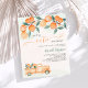 Um fundo verde e laranja, de cor aquosa. Decorado com laranjas e caminhões de cor aquosa. Personalize e adicione um nome e detalhes da parte. Texto: Uma pequena Cutie está a caminho. 1 folha = 1 convite impresso de borda a borda.
