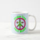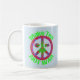 Caneca bonito com um olhar retro. O símbolo de paz psicadélico e as palavras fazem a guerra do chá não. Faz uma ideia legal do presente para um bebedor do chá.
