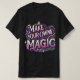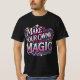 design de camiseta na moda e inspiradora com a frase 'Faça sua própria magia' com tipografia elegante e sutis elementos mágicos. Perfeito por adicionar um toque de positividade e criatividade ao seu guarda-roupa.