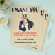 Este folheto parece o clássico poster de recrutamento do Tio Sam. Todo o texto abaixo do gráfico está pronto para ser personalizado com sua própria mensagem para que você possa criar um folheto atraente para promover seu negócio, seu evento histórico ou simplesmente fazer uma declaração política.
