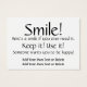Pelo custo de um grupo de negócios/cartões de visitas chubby, mantenha um sorriso à mão para entregar a um amigo... ou aleatoriamente a alguém que parece precisar dele. Pode fazer diferença na vida de alguém. Coloquei isso no estoque branco básico. Brinque com as reservas disponíveis. A Zazzle oferece descontos de quantidade. Aproveite! Obrigado! Sorria ... ; )