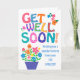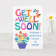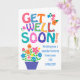Um cartão de saudação brilhante e alegre, "Get Good Logo", de cirurgia ocular, com letras coloridas, padronizadas e flores. Há bolinhas, chevrons e listras na inscrição 'Get Good Logo' e 'Desejando-lhe uma rápida recuperação da sua CIRURGIA OCULAR está em azul. Por favor, sinta-se à vontade para personalizar a mensagem dentro, se quiser.