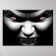 Face de Mau Vampire Poster apresenta um Mau Vampire Face Leering com Olhos Vermelhos Brilhantes e Presas Afrontadas