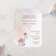Torne o 4º aniversário da sua filha realmente mágico com este convite encantador de tema de fadas. Apresentando uma fada doce de cabelos roxos com asas delicadas, tocadas sobre cogumelos brancos e flores pastéis, essa design dá o tom perfeito para uma festa de jardim sonhador ou uma celebração de floresta encantada.