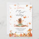 Fall Fairy First Birthday Invitation with a Fox and a pixel with wings and fall Foles an Bompkins
