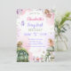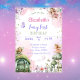 Um convite para o tema de fada do primeiro aniversário, fada, convite para o primeiro aniversário da fada. Púrpura, rosa-branca