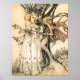Fairytale Princess e Tree Elf poster. Ilustração Arthur Rackham. O artista britânico Arthur Rackham criou uma das mais belas obras de fantasia do início do século XX. Esta ilustração mostra uma bela jovem amada por um elfo de solitário numa floresta encantada. A garota veste um vestido branco de conto de fadas. Um presente bonito para fãs de Arthur Rackham, Fantasy Art e Fantasy Illustrations.