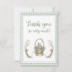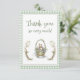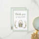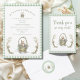 Um cartões de agradecimentos charmoso e delicado, com uma paleta de pasta macia com uma estrutura verde de gingham. O design incorpora doces ilustrações de sotaques de conto de fadas em verdes e vinhas varridas. O design também tem tons suaves de rosa azul-esbranquiçado, verde-sábio. Flores brancas e verdes cercam o doce gráfico animal dando a ele um toque elegante, mas lúdico. Perfeito por receber qualquer bebê do gênero.