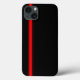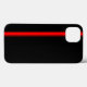 Uma capas de iphone preta com uma faixa vermelha de corrida ao fundo.