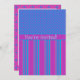 Um Convite de festas multiuso colorido para você personalizar, com um padrão de Bolinhas e Stripes misturado em Magenta, Azul Brilhante, Turquesa e Rosa. Parte do intervalo 'Magenta Magenta' Posh & Painterly.