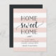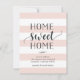 Anúncios encantadores e modernos e em movimento deixam amigos e familiares saberem sobre sua nova casa doce! Design apresenta um fundo listrado sutil em cor-de-rosa e branco-rosado pastel, com "home doce home" em script preto suave e tipografia de blocos. Use os campos modelo para adicionar sua introdução personalizada, novo endereço e nomes.