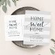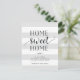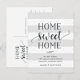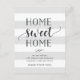 Anúncios encantadores e modernos e em movimento deixam amigos e familiares saberem sobre sua nova casa doce! Design apresenta um fundo listrado sutil em cinzas pálidas e brancas, com "lar doce lar" em script preto suave e tipografia de blocos. Use os campos modelo para adicionar sua introdução personalizada, novo endereço e nomes. As informações se repetem no lado inverso com o espaço para endereçamento do destinatário.