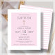 Celebre o batismo do seu filho com nossos belos convites para batismo rosa! Estes convites têm uma borda branca e uma rosa claro, com uma cruz de efeito ouro espantoso que adiciona um toque de elegância à vossa ocasião especial. O verso do convite apresenta um design cor-de-rosa e branco-listrado, dando-lhe um aspecto charmoso e polido. Os nossos convites são impressos em papel de barato, fazer-os de uma excelente escolha para aqueles que querem celebrar o batismo do seu filho sem quebrar o banco. Eles também são fáceis de personalizar, permitindo que você adicione seu próprio texto e detalhes para tornar o convite realmente único. Quer você esteja hospedando um pequeno encontro ou uma grande celebração, nossos convites para batismo cor-de-rosa são perfeitos para convidar seus amigos e família a compartilhar neste momento especial com você.