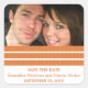 Foto simples e moderna Triple Stripe Salve os adesivos de data com borda listrada em laranja e um modelo de foto. Estes colegas de classe salvam os adesivos são perfeitos para anunciar o seu casamento! Fácil de personalizar, adicione seus detalhes de casamento e substitua a foto por uma de suas. Clique em "Personalizar" para encontrar mais opções de personalização.