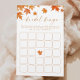 Adicione diversão à sua comemoração com este Jogo Bingo de Chá de panela de Queda Personalizado, perfeito para encontros confortáveis e vibrações meteorológicas nítidas. Um encantador acréscimo ao seu chá de panela de outono, este jogo é divertido e elegante. Ideal para quem procura ideias únicas de chá de panela de outono ou queda romântica em ideias de chá de panela de amor para completar a experiência perfeita de chá de panela de outono.