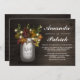 Fall Leaves Mason Jar Rustic Wedding Invances - apresentar um jarro de mason decorado com fio com folhas coloridas de queda e luzes sobre um fundo de madeira rústica do campo. Consulte a coleção correspondente neste design nesta página.