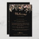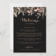 Esta carta de boas-vindas florais de outono é perfeita para um casamento rústico. O design apresenta flores cor-de-rosa, esbranquiçadas, amarelas, silvestres de campo e erva-pampas marrom reunidas em buquês florais sem costura e deliciosos, evocando a beleza natural. Personalize a frente com uma mensagem de boas-vindas para seus convidados e seus nomes. Personalize as costas com a programação de eventos e outras informações úteis.