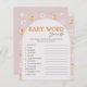 Desafie os seus convidados com este cartão de jogo divertido Baby Word Scramble, projetado para combinar com a sua coleção A Little Pumpkin Is On Way chá de fraldas. Decorado com abóboras e margaridas em tons confortáveis de outono, este jogo é a combinação perfeita de diversão e encanto de outono. Os convidados gostarão de palavras relacionadas ao bebê, enquanto celebram a futura mãe. Excelente para uma menina, um rapaz ou chás neutros em relação ao gênero!