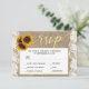 Dourado script de caligrafia RSVP de casamento com opções de menu com buquê rústico de girassóis em um fundo bege faux burlap com bordas de rendas. Ideal para o seu verão ou outono | elegante país russo | jardinagem no quintal exterior casamentos temáticos. ++++++++++++++++++ Se você não precisa das opções de menu. basta excluir os textos correspondentes nos pontos!