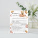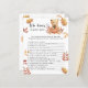 Celebrar com esta festa de chá de fraldas do ursinho de outono! Ursinho de pelúcia bonitinho com uma abóbora de outono nas patas do outono. No verso do cartão estão as folhas do outono. Itens correspondentes disponíveis.