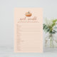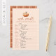 Traga sorrisos e risos para o seu chá de fraldas de outono com esta deliciosa Xadrez de outono Um Jogo de Palavras de Pumpkin! Esta palavra de abóbora é um sucesso em qualquer celebração de bebê! Mantenha seus hóspedes entretidos à medida que desembaralham palavras relacionadas a bebês como fralda, cobertor e chocalho. O jogo simples, mas desafiador, encoraja todos a trabalharem juntos, desencadeando conversas e aproximando seus convidados. Quer você esteja hospedando um chá de casais ou um jornal de senhoras, este jogo é divertido para todos. O pano de fundo festivo da xadrez com seu doce pequeno gráfico de abóbora ajuda a preparar o humor para seu bebê borrifador de outono. Qualquer futura mãe será tocada pela reflexão de um jogo que é tudo sobre o seu pacote de alegria previsto. Torne o dia da futura mãe especial com este jogo que é igual a partes bonitinhas, divertidas e fabulosas!