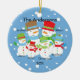 Nossa família dos enfeites de natal 6 caracteriza um grupo bonito do casal do boneco de neve em um fundo azul enchido neve! Personalize com sua informação e data e você são todos ajustam-se para ir! Presente datado maravilhoso da lembrança para seu primeiro Natal e uma grande adição a você coleção dos enfeites de natal.