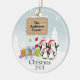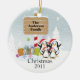 Nossa família datado original dos enfeites de natal 4 caracteriza os pinguins os mais bonitos da família de quatro pessoas ajustados em uma neve & em um fundo azul enchido da árvore de Natal! Personalize com sua informação e data e você são todos ajustam-se para ir! Presente datado maravilhoso da lembrança para sua árvore de Natal da família e uma grande adição a você coleção dos enfeites de natal.