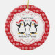 Nossa família datado original dos enfeites de natal 2 caracteriza a família a mais bonito de 2 pinguins ajustados em um fundo vermelho & branco do floco de neve. Personalize com sua informação e data e você são todos ajustam-se para ir! Presente datado maravilhoso da lembrança para sua árvore de Natal da família e uma grande adição a você coleção dos enfeites de natal.
