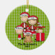 Isto será uma guardiã de todos os tempos! É uma família adorável vestida de roupas e chapéus de Papais noeis vermelhos. Tem um fundo verde claro com pontos verdes mais escuros seguidos. Há um Pai, mãe, um menino e um menino. Também há um cachorro fofo. Veja as outras combinações de família e ornamentos na nossa loja. ©JW Ilustrações
