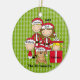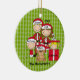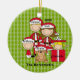 Isto será uma guardiã de todos os tempos! É uma família adorável vestida de roupas e chapéus de Papais noeis vermelhos. Tem um fundo verde claro com pontos verdes mais escuros seguidos. Há um Pai, mãe, uma menina e um bebê. Há também um cachorro fofo. Veja as outras combinações de família e ornamentos na nossa loja. ©JW Ilustrações