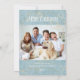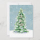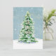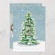 "Cartão de Fotografia da Família Simples de Árvores de Natal Elegante Moderno." Elegantemente pintado em aquarela uma árvore de Natal iluminada e neve com estrelas de ouro brilhando em um céu azul suave e poeirento e nevado. O design de texto da tipografia simplesmente diz, "Oh Santa Noite", fornecendo o foco simples na razão da estação. Trabalho de arte pintada por uma artista e designer internacionalmente licenciada, Audrey Jeanne Roberts, copyright.