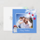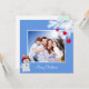Família personalizada, pinheiro branco ornamentado com bolas de Natal vermelhas e bonitinho bonitinho no céu azul Cartão de Saudação de Natal. Você pode adicionar sua foto favorita!