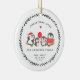Simplesmente perfeito Enfeites de natal familiar com uma doce família de pinguins com coroa estendida à mão moderna e um pequeno coração. Datas de guardar presente para o Natal da sua família.