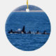 Ornament Souvenir - capturei esta grande família de Baleias Orca Selvagens perto do Seward Alaska em junho de 2014. Orcas, ou baleias assassinas, são os maiores golfinhos e um dos mais poderosos predadores do mundo. Elas protegem seus jovens, e outras mulheres adolescentes muitas vezes ajudam a mãe a cuidar delas. Eles dão à luz a cada três a dez anos, após uma gravidez de 17 meses. São imediatamente reconhecíveis pela sua coloração distintiva a preto e branco e são os mamíferos inteligentes e treináveis. Procurando