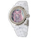 Bonito flores cor-de-rosa e sussurros brancos adoram este relógio perfeito.
