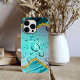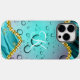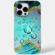 Capa Case-Mate para iPhone 14 Pro Max com Fantasia de Gotas de Chuva em Folha de Ouro Verde Teal Monograma