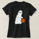Um fantasma adorável segurando um truque ou uma mala faz uma camiseta de Halloween muito bonita. Perfeito em uma camisa preta ou marinho. Personalize com seu próprio nome. Ou mensagem da sua escolha. De quem?