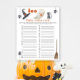 Apresentando uma aquarela fofinha de fantasma bebê e estética de Halloween. Um pouco de bu está quase a chegar! Chá de fraldas temático do Halloween com fantasma de aquarela, gato preto, chapéu de bruxa, esfregão mágico, aranha pendurada numa teia. O pequeno fantasma está comendo um pirulito.