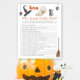 Apresentando uma aquarela fofinha de fantasma bebê e estética de Halloween. Um pouco de bu está quase a chegar! Chá de fraldas temático do Halloween com fantasma de aquarela, gato preto, chapéu de bruxa, esfregão mágico, aranha pendurada numa teia. O pequeno fantasma está comendo um pirulito.