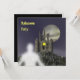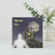 Este convite para festas de Halloween apresenta um fantasma e uma casa assombrada. Personalize este design com seu próprio texto.