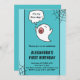Este primeiro aniversario de Halloween convida um fantasma da teia de aranha : Este primeiro aniversario de Halloween convida em azul / turquesa com teias de aranha / teias de aranha e este fantasma bonitinho gritando "é o meu booday / boitday, é para crianças (menina) (ex: É o meu boo dia! Por favor, junte-se a nós para celebrar o primeiro aniversário de Alexandra... outubro...) é excelente para o aniversário de halloween. Você pode personalizar estes convites de festa de aniversário feminina de halloween com todas as suas informações. Perfeito para convites de primeiro aniversario de halloween, convites de primeiro aniversário de halloween, primeiro aniversário de halloween, festa de aniversário de menina, aniversário de outubro, primeiro aniversario de menina... HALLOWEEN THEME ( feliz dia, primeiro convite de aniversário de halloween, primeiro aniversario de halloween, primeiro, giro, fantasma bonitinho, kawaii, outubro, para crianças, menina)