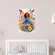Poster de uma jovem com asas vibrantes de borboletas cercadas por flores coloridas, expondo um senso de magia e capricho. Seu vestido espelha as matizes das asas, combinando as borboletas brilhantes fluindo ao seu redor.
